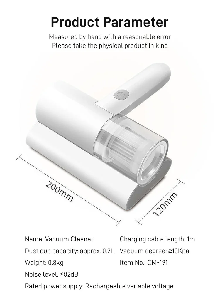 The mattress cleaner machine has 12kpa suction and a 300w motor. Targeted mattress vacuum removes dust and grime from fabrics and deep cleans your bed, pillows, carpet.