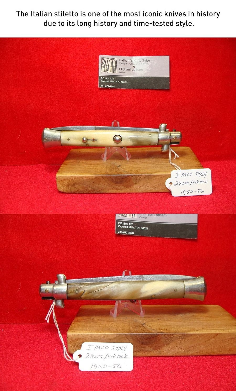 Krásný, ručně vyrobený, staromódní italský kapesní nůž s rukojeťmi z nerezové oceli a jednobřitou čepelí ve stylu bajonetu.