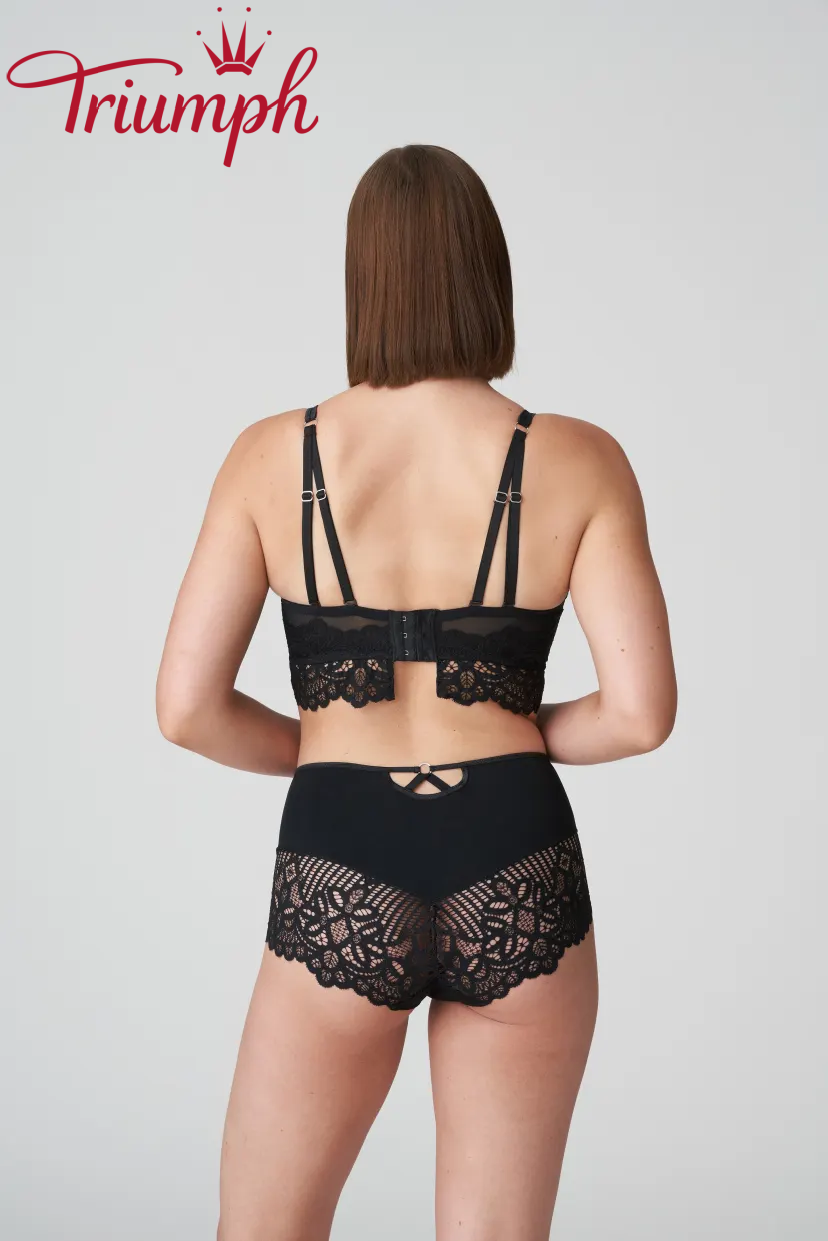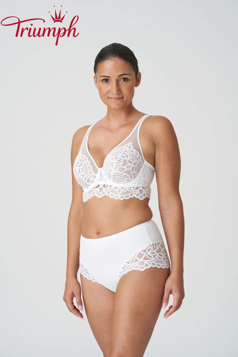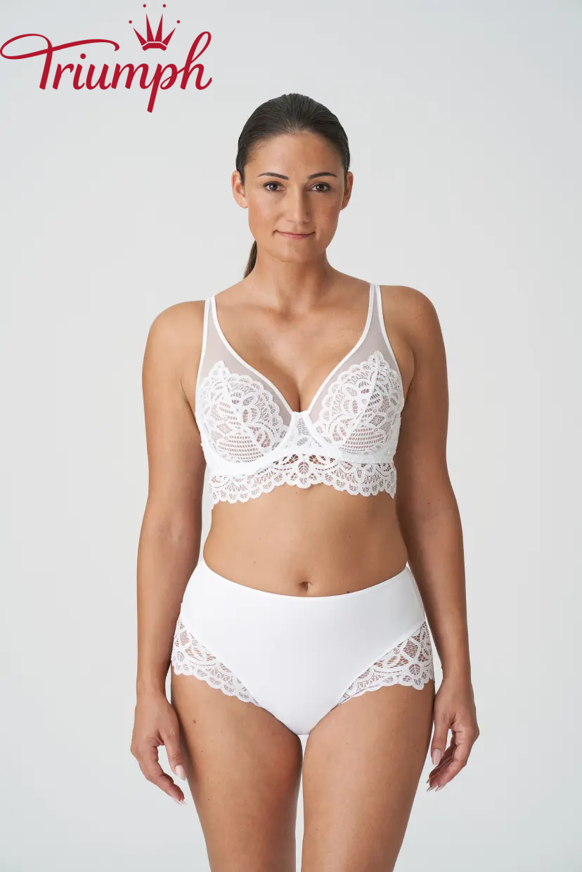 Wygodny biustonosz bez fiszbin z bawełnianą miseczką i elastyczną górą wykonaną z koronki pochodzącej z recyklingu. Dla większego komfortu pod biustem znajduje się szeroka gumka. Regulowane elastyczne paski. Tylna okładka wykonana jest z koronki pochodzącej z recyklingu i podszyta bawełną, dzięki czemu można ją zamykać na rzepy i oczka.