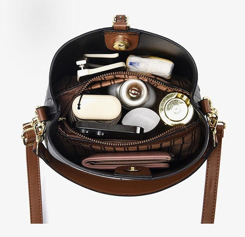 MULTIPLE COMPARTMENTS FOR ORGANIZATION - Ta torba to nie tylko estetyka; jest również niezwykle praktyczna. Dzięki głównej kieszeni, ukrytej kieszeni na suwak, bocznym kieszeniom i wewnętrznej naszywanej kieszeni, może ona uporządkować swoje niezbędne rzeczy.