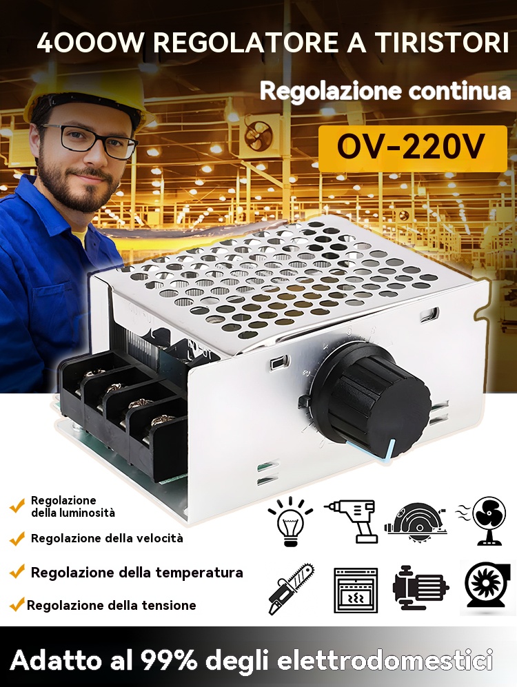 【2/4/6 ks】Elektronický regulátor napětí s vysokým výkonem 4000W / Regulace rychlosti / Regulace teploty — s ochranným krytem